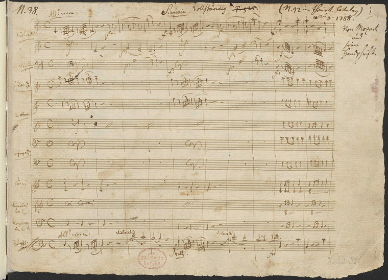 The first page of Mozart's Symphony No.41 (Jupiter), in the original manuscript