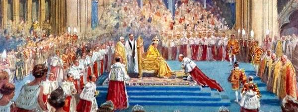 Detail from a painting by Henry Charles Brewer, showing George VI receiving the homage at his coronation in 1937