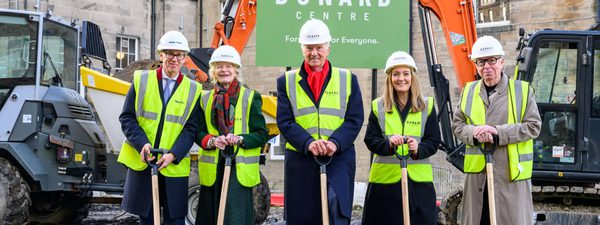 Image: Dunard Centre Groundbreaking Ceremony Chair Ronnie Bowie (centre) with partners (left to right) Nick Crossfield, Carol Grigor, Jo Buckley, Sir David Chipperfield. Photo Ian Georgeson.