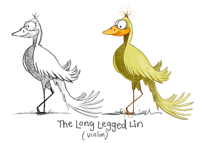 Corrina: After deciding that the story would focus around the main character ‘The Great Grumpy Gaboon’ I knew that each of the other characters would also have to have a name that reflected their instrument.