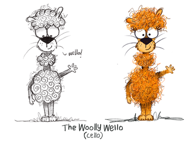Corrina: As with all my work, I tried to approach this from a child’s perspective and think of fun and interesting ways that the name of the instrument could be said or adapted to lend itself to a character name.